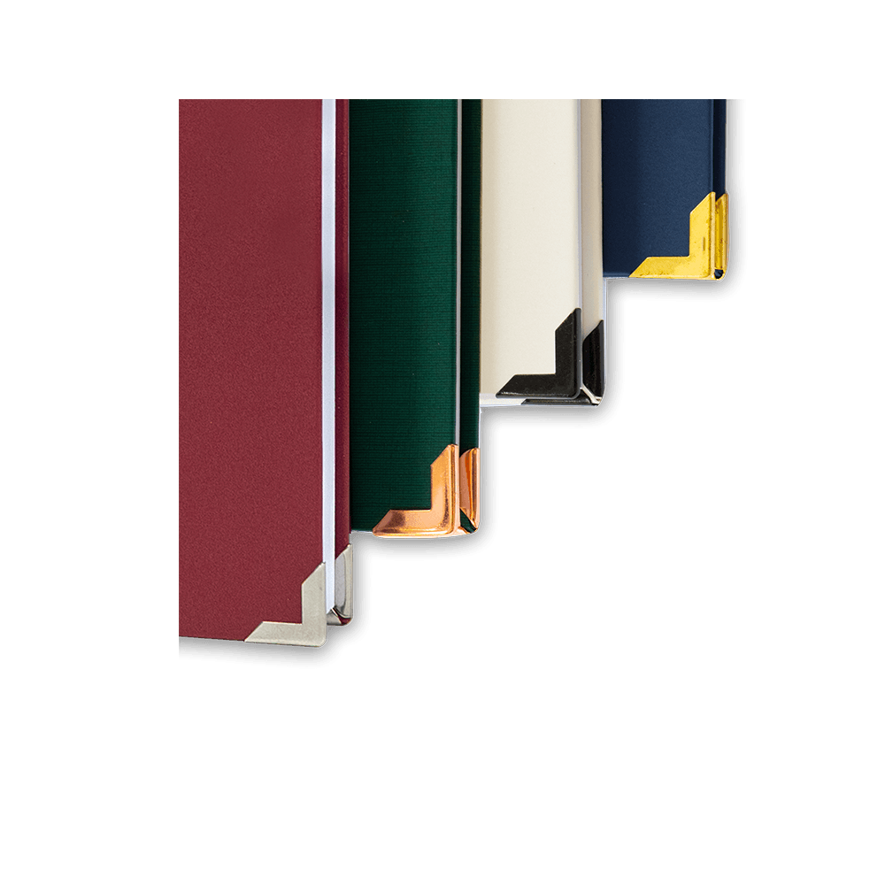 Der Außenband besteht aus einem sehr stabilen Karton in Leinenstruktur-Optik, den wir Dir in 7 verschiedenen Farben anbieten können.